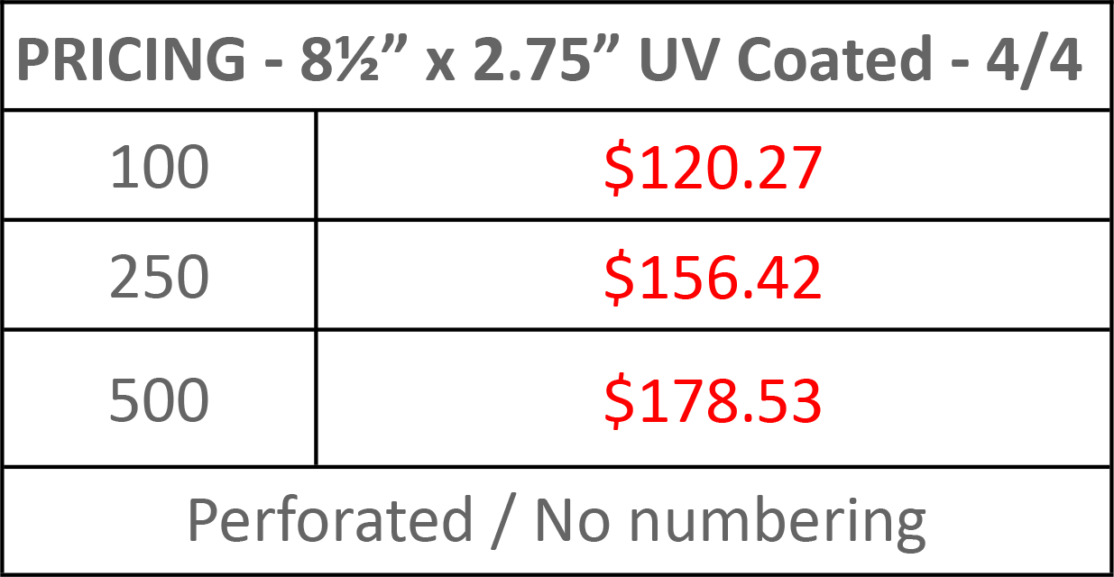 They’re perforated and have optional variable numbering for a professional touch. Numbered tickets are essential for any paid even, allowing you to ensure that all entrants are paid and accounted for. Great for fundraisers, raffles, charity galas, etc.